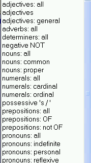 Tip: to get a feeling for different ways to specify POS tags, select various entries from the drop-down list and study the codes that appear in the POS field.