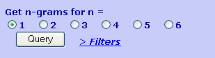 Note the < Top link to jump back to the top, e.g. to change the value of n. Decreasing the value of n hides some of the filter fields, but the values are preserved and reappear when the higher value of n is restored. Careful: clicking the Clear Filters button erases everything directly, without confirmation. It is a good idea to click this button when starting a new query lest you unintentionally carry over filters from a previous search.